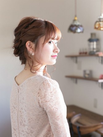ゆるやかなウェーブでつくるフルアップのアレンジスタイル。 フルアップにすることでトップの無造作感もフォーマルな装いに。 お好みでヘアアクセサリーなしでもOK。 大切な日のお呼ばれヘアは”清潔感”と” 品の良さ”で大人可愛く仕上げます。