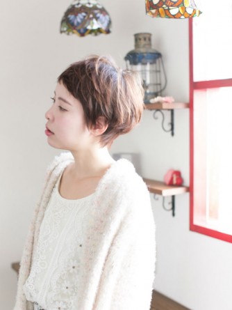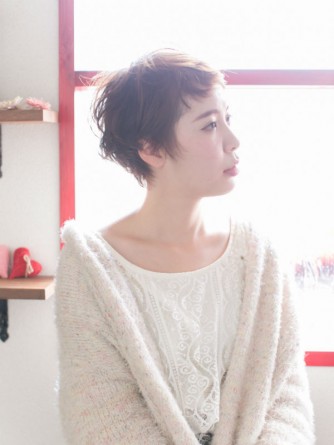 柔らかく動く毛先と、ショートバングが表情を明るく演出します。透明感のあるカラーで、柔らかさと優しい印象を強調させることができます。